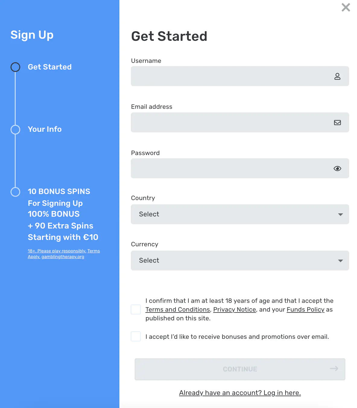 Registering at Casilando Casino